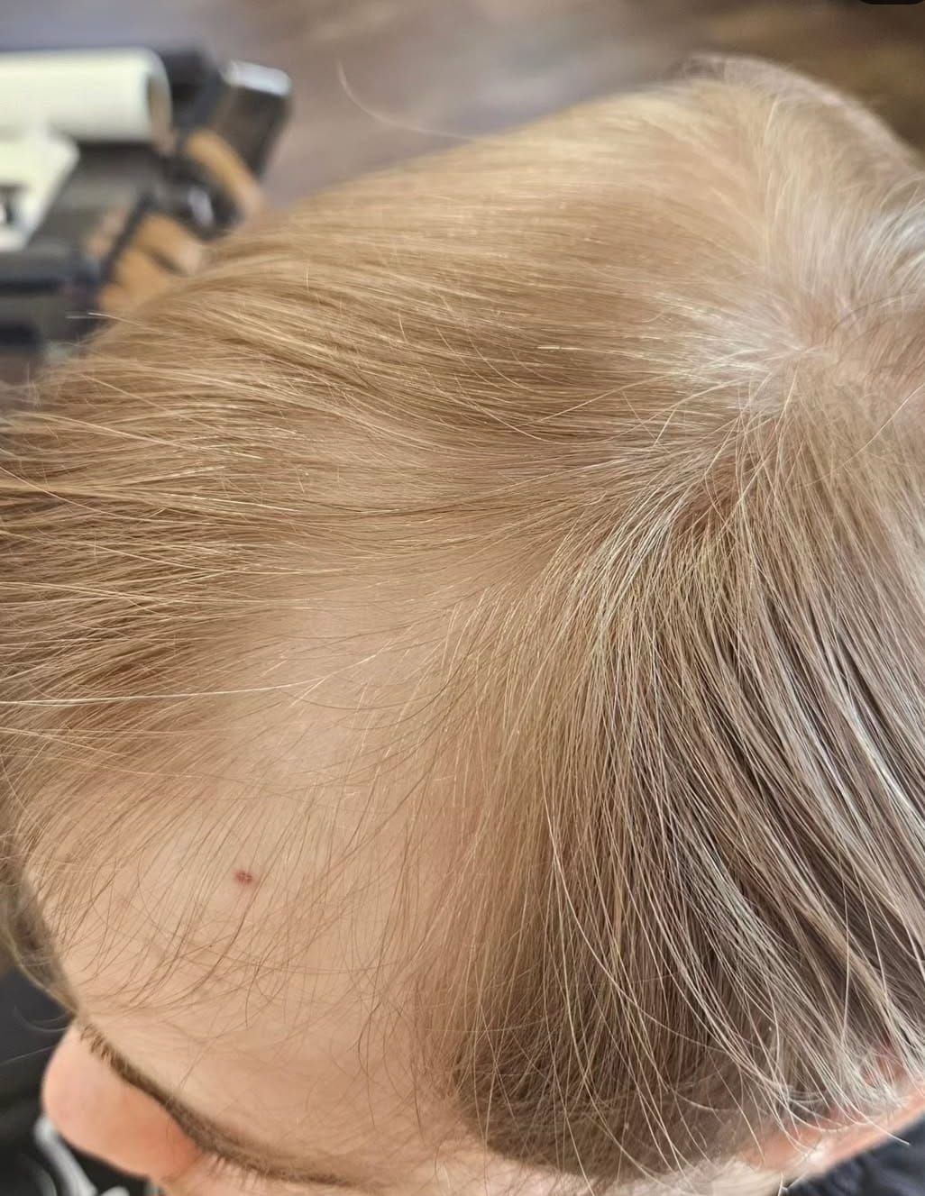 - Oberkopfhaarteile bei lichtem Haar im Scheitel- und Oberkopfbereich
